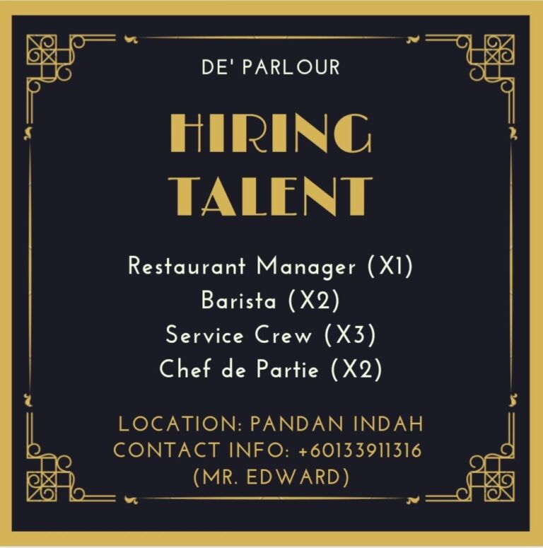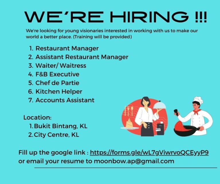 We are looking for full time Chef De Partie,Demi Chef, Commis 1 and Commis 2 Send us your details if you are interested! Working location: My Eating Monster Setapak Requirements: Experience in F&B industry Various bonus & best treatment EPF…