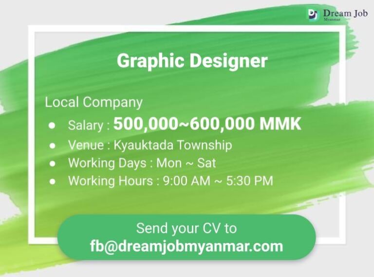 [Unicode] မင်္ဂလာပါ….. “မြန်မာနိုင်ငံရှိ Japan Company တစ်ခုတွင် တာဝန်ထမ်းဆောင်ရန် 【Japanese Speaking Market Support Staff-Female Only(300USD ~ 400USD】 လစ်လပ်ရာထူးအား ခေါ်ယူနေပါသည်” Industry Category : Banking Industry CVကို js@dreamjobmyanmar.comသို့ပေးပို့လျှောက်ထားနိုင်ပါသည်။ CVပေးပို့သည့်အခါ လျောက်ထားလိုသည့် ရာထူးအား ပေါ်လွင်စေရန် Email Subject နေရာတွင် “Position Title” ကို ထည့်သွင်းဖော်ပြပေးစေလိုပါသည်။ ———————————————————————————- ■Facilities Salary :350…